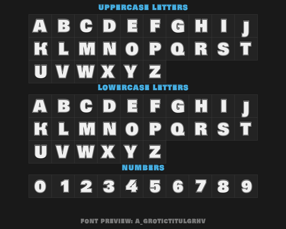 a_grotictitulgrhv is a font file with a size of 0.09 MB. The full font name is a_GroticTitulGrHv, 01.03 version. It contains 276 characters, supports 8 Chinese characters. The copyright belongs to a_GroticTitulGrHv. a_grotictitulgrhv font is available for free download, but commercial use requires confirmation on the a_GroticTitulGrHv official website whether it's free for commercial use.