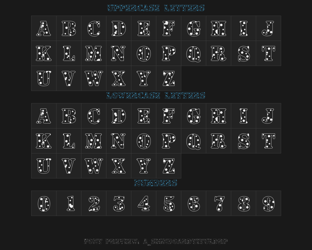 a_signboardtituldrp is a font file with a size of 0.10 MB. The full font name is a_SignboardTitulDrp, Macromedia Fontographer 4.1 22.11.97 version. It contains 193 characters, supports 8 Chinese characters. The copyright belongs to a_SignboardTitulDrp. a_signboardtituldrp font is available for free download, but commercial use requires confirmation on the a_SignboardTitulDrp official website whether it's free for commercial use.