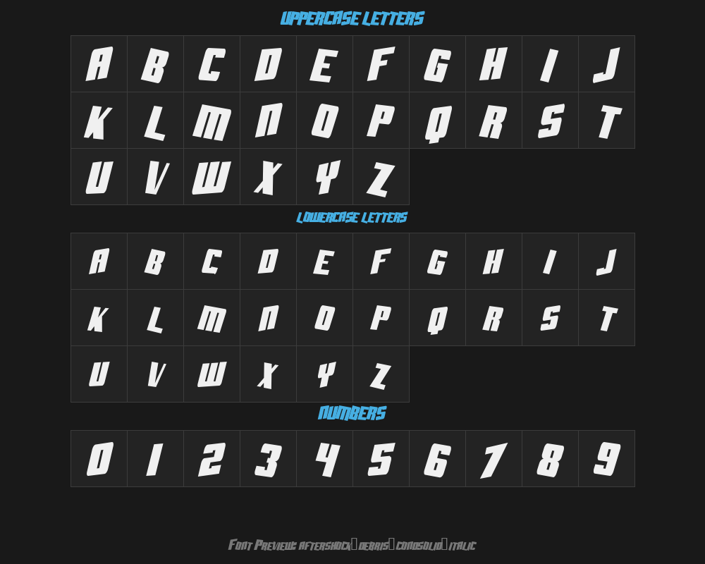 | PostScript name | AftershockDebrisCondSolidItalic |