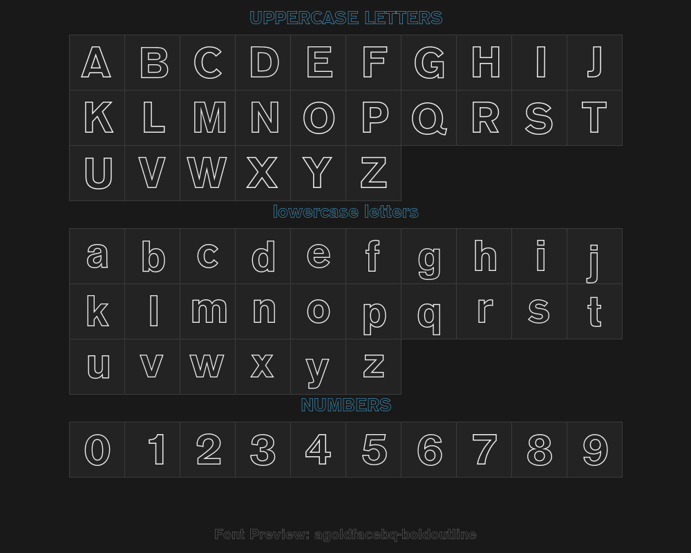 | Full font name | AGOldFaceBQ-BoldOutline |