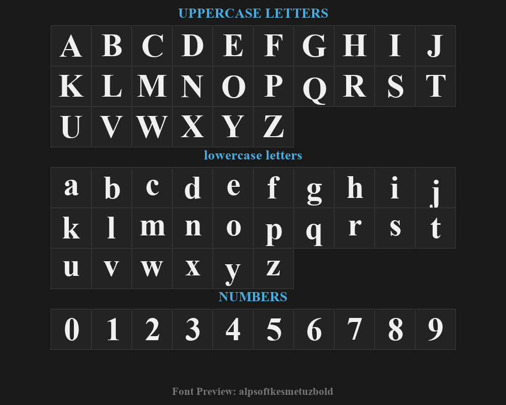 | PostScript name | AlpsoftKesmeTuz-Bold |