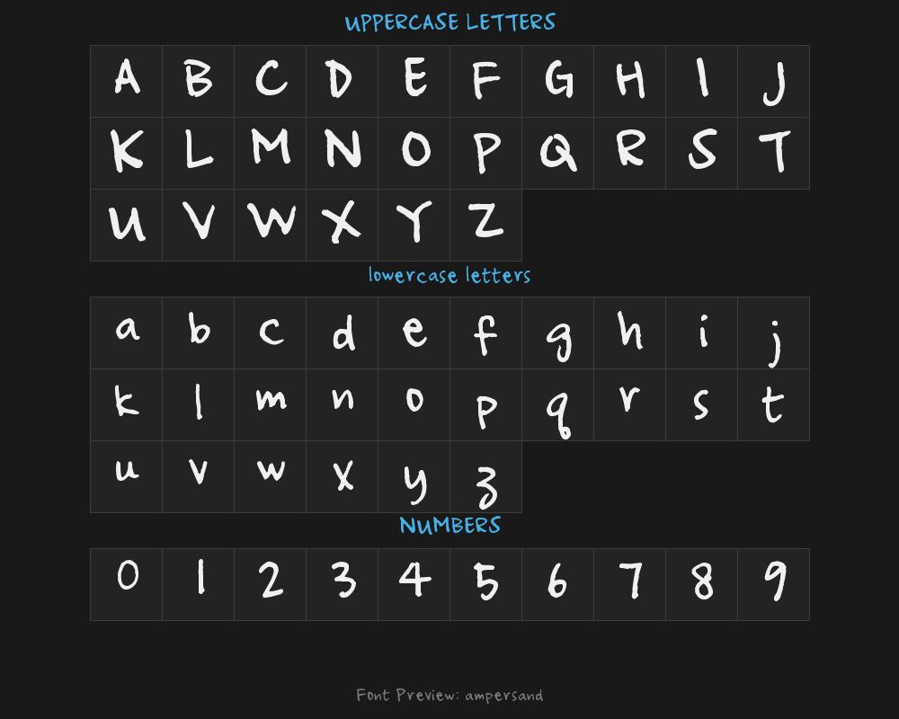 ampersand is a font file with a size of 0.02 MB. The full font name is Ampersand, Version 1.00 May 29, 2005, initial release version. It contains 656 characters, supports 8 Chinese characters. The copyright belongs to Ampersand. ampersand font is available for free download, but commercial use requires confirmation on the Ampersand official website whether it's free for commercial use.