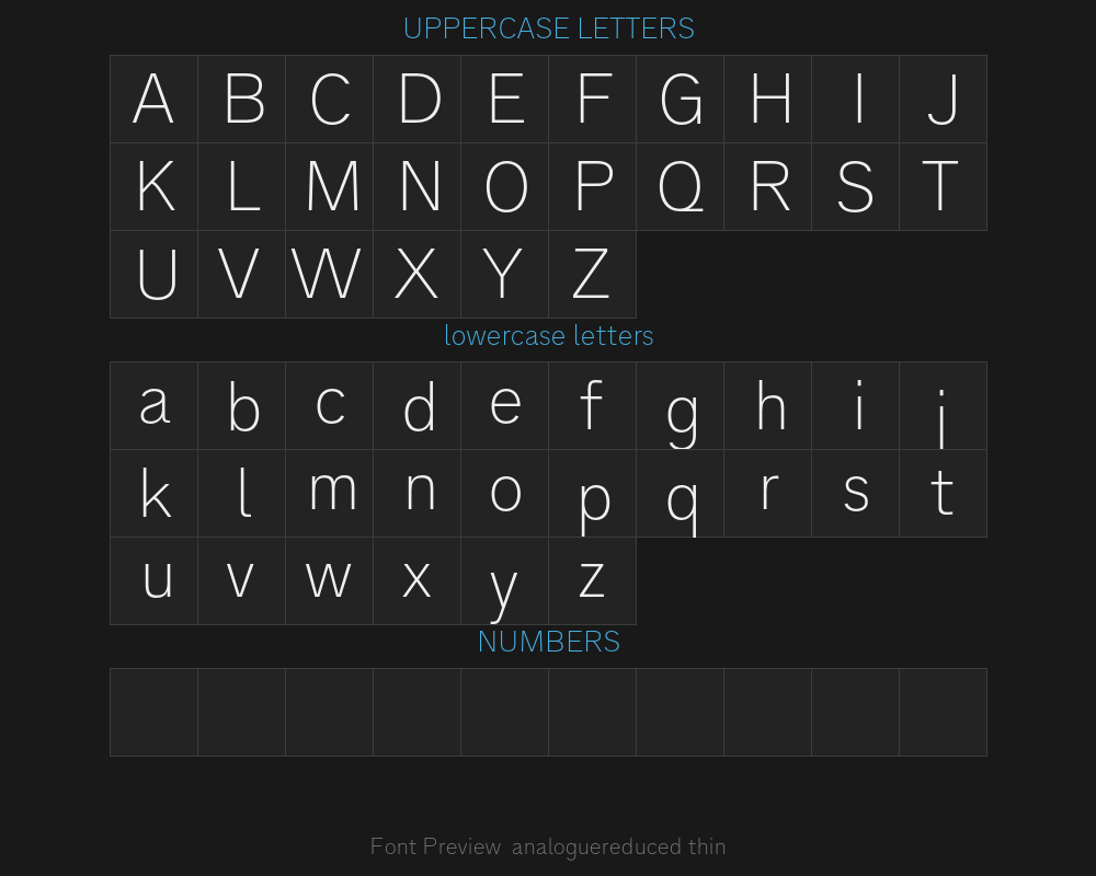 | AboutFont | IngoZimmermann Analogue Reduced 35 Thin 2010 |