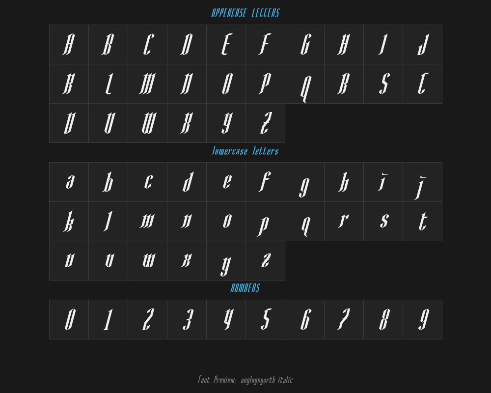 | PostScript name | AngloYsgarth-Italic |