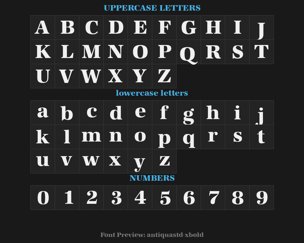 | File name | antiquastd-xbold.ttf |