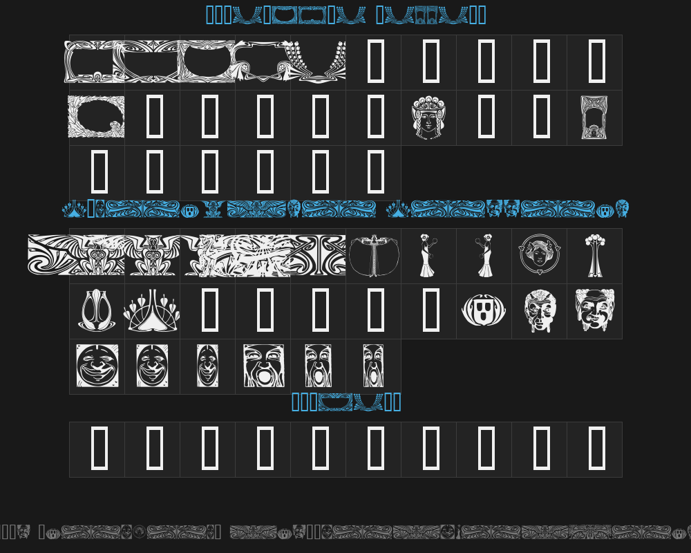 artnoveauheaders is a font file with a size of 0.11 MB. The full font name is Art Noveau Headers, 30-04-98 version. It contains 30 characters, supports 8 Chinese characters. The copyright belongs to Art Noveau Headers. artnoveauheaders font is available for free download, but commercial use requires confirmation on the Art Noveau Headers official website whether it's free for commercial use.