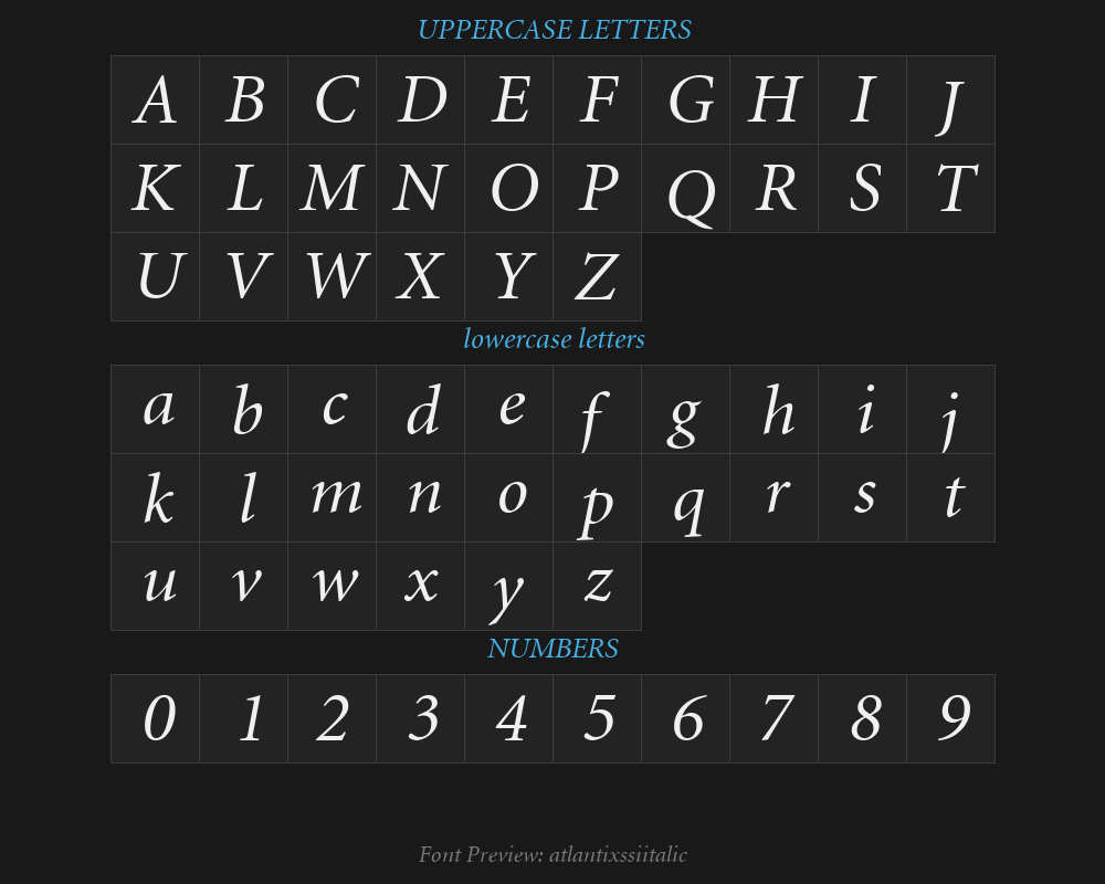 Overview:atlantixssiitalicFont
