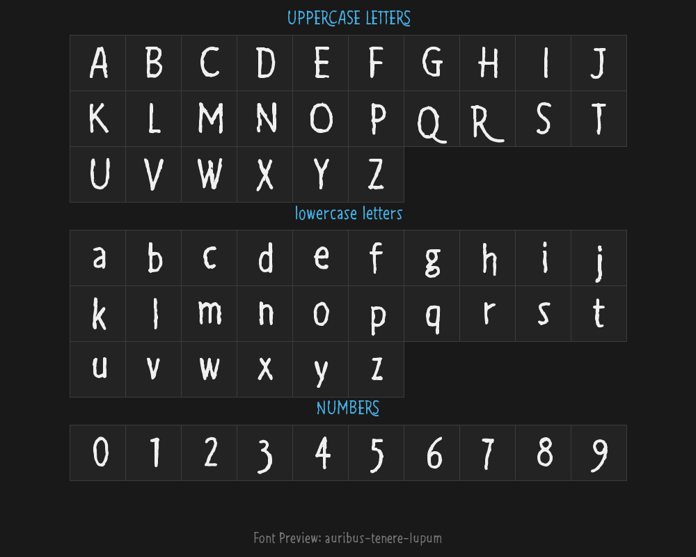 auribus-tenere-lupum is a font file with a size of 0.05 MB. The full font name is Auribus tenere lupum, Version 1.00 November 14, 2015, initial release version. It contains 226 characters, supports 8 Chinese characters. The copyright belongs to Auribus tenere lupum. auribus-tenere-lupum font is available for free download, but commercial use requires confirmation on the Auribus tenere lupum official website whether it's free for commercial use.