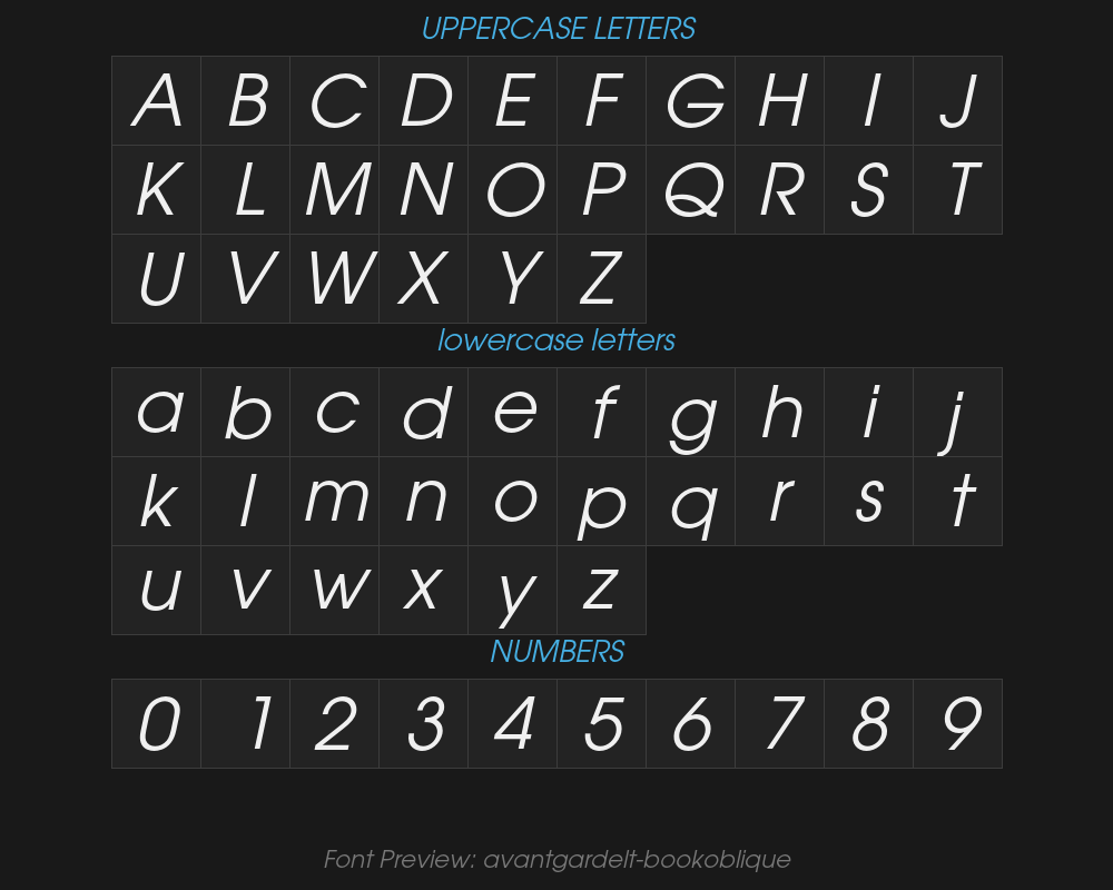 | File name | avantgardelt-bookoblique.otf |