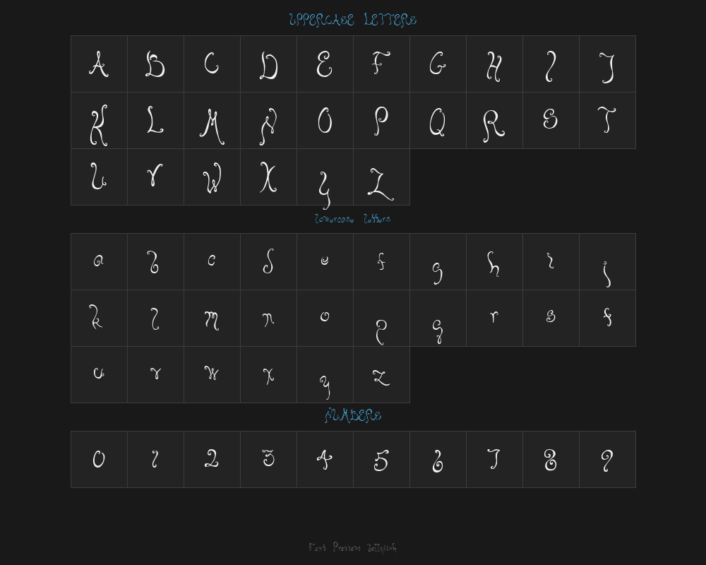 bellyfish is a font file with a size of 0.03 MB. The full font name is Bellyfish, 1.0 version. It contains 87 characters, supports 8 Chinese characters. The copyright belongs to Bellyfish. bellyfish font is available for free download, but commercial use requires confirmation on the Bellyfish official website whether it's free for commercial use.