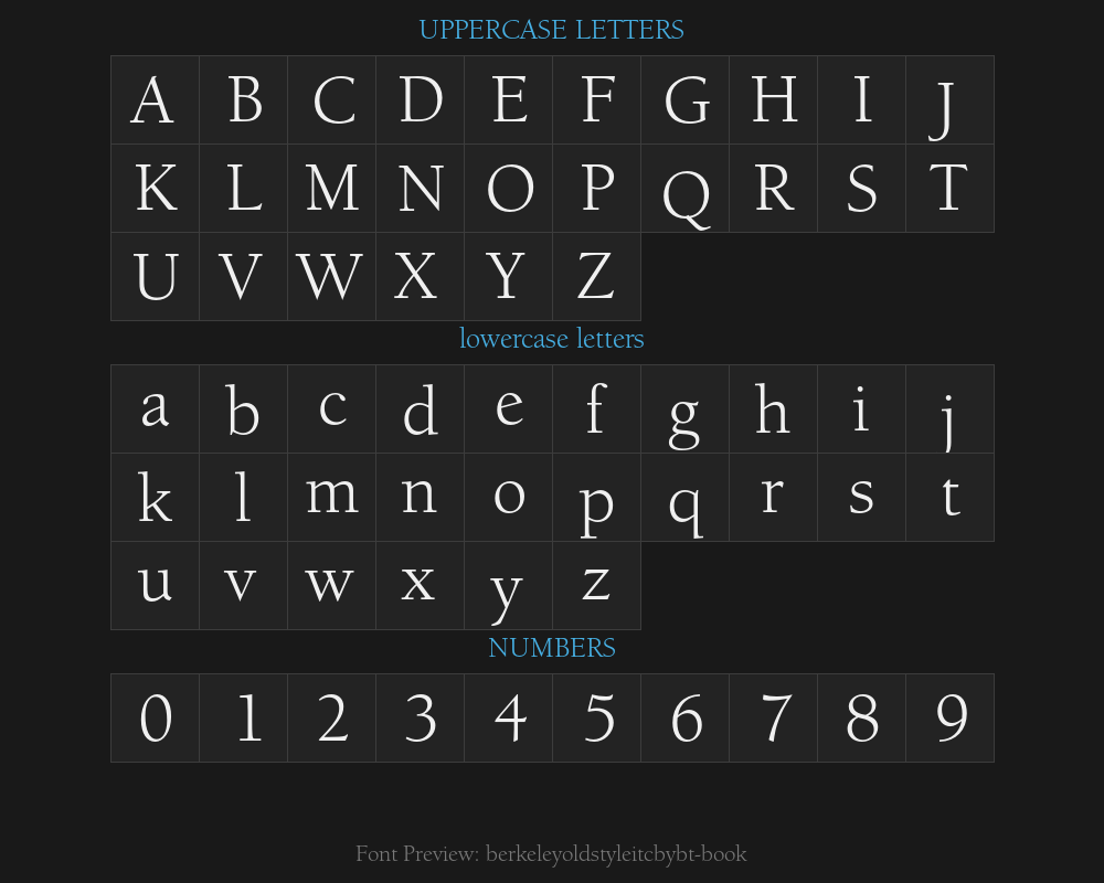 Overview:berkeleyoldstyleitcbybt-bookFont