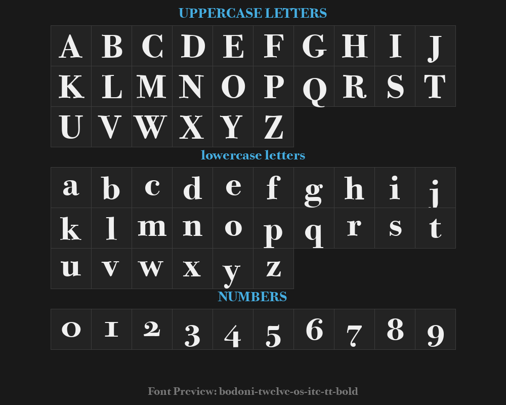Overview:bodoni-twelve-os-itc-tt-boldFont