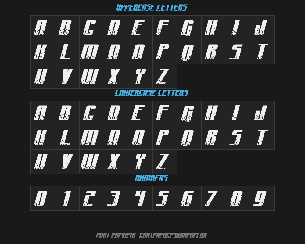 craterfaceshrapnelbbFont details