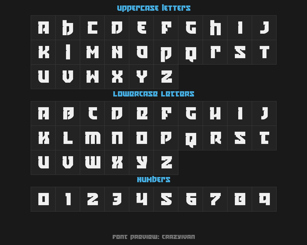 crazyivan is a font file with a size of 0.02 MB. The full font name is Crazy Ivan, Version 1.0; 2017 version. It contains 217 characters, supports 8 Chinese characters. The copyright belongs to Crazy Ivan. crazyivan font is available for free download, but commercial use requires confirmation on the Crazy Ivan official website whether it's free for commercial use.