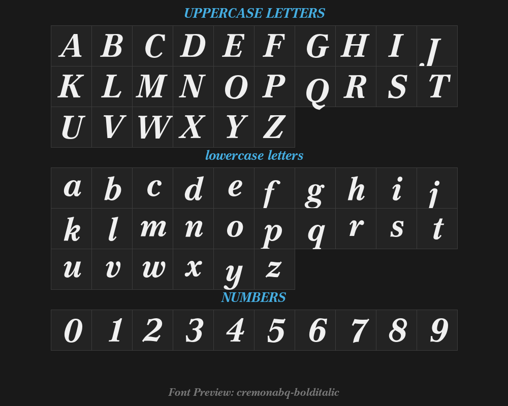 | AboutFont | Cremona Bold Italic 1178531631 |