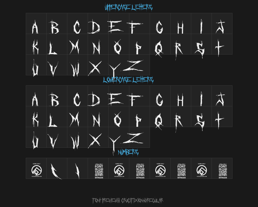 | Font description | Crucifixion Regular is a font by Font Monger, designed by Chris Vile in 2015. |