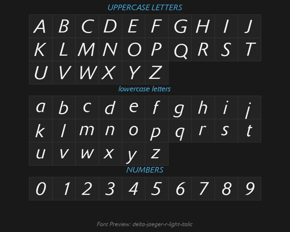 delta-jaeger-r-light-italicFont details