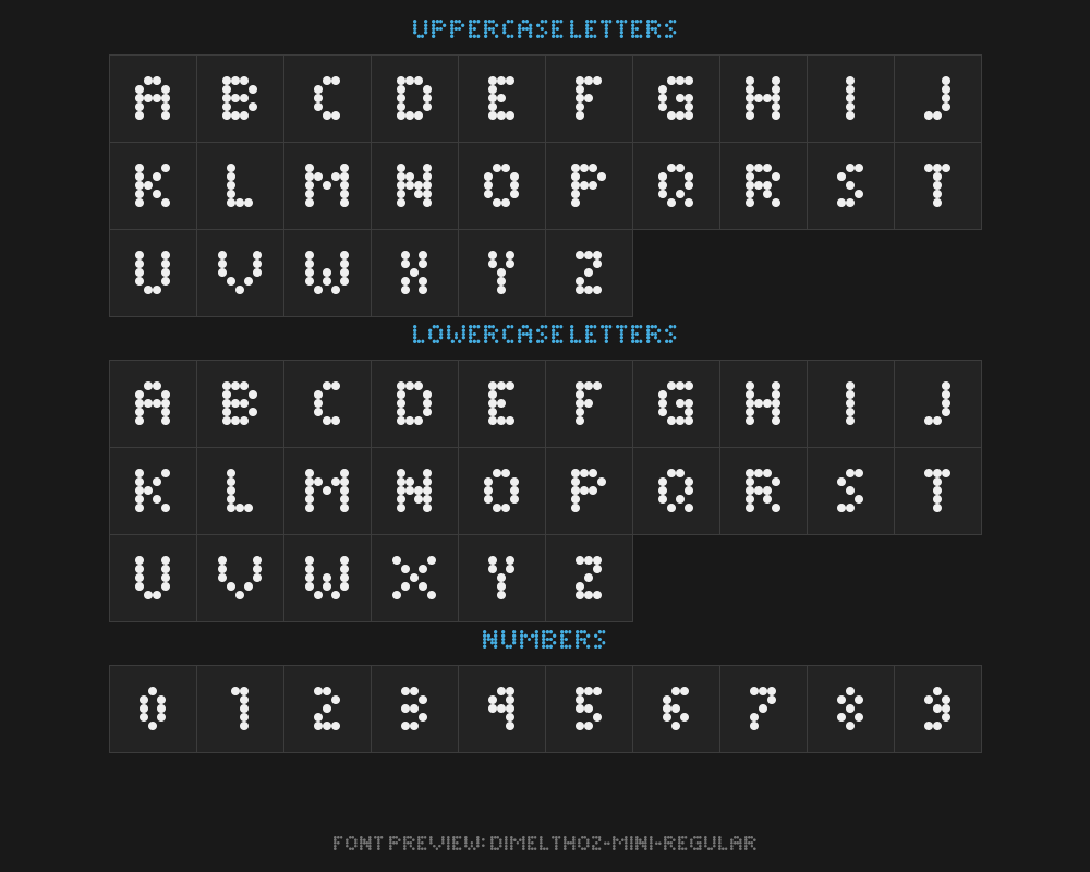 | Font description | “Dimelthoz Mini” was built with FontStruct |