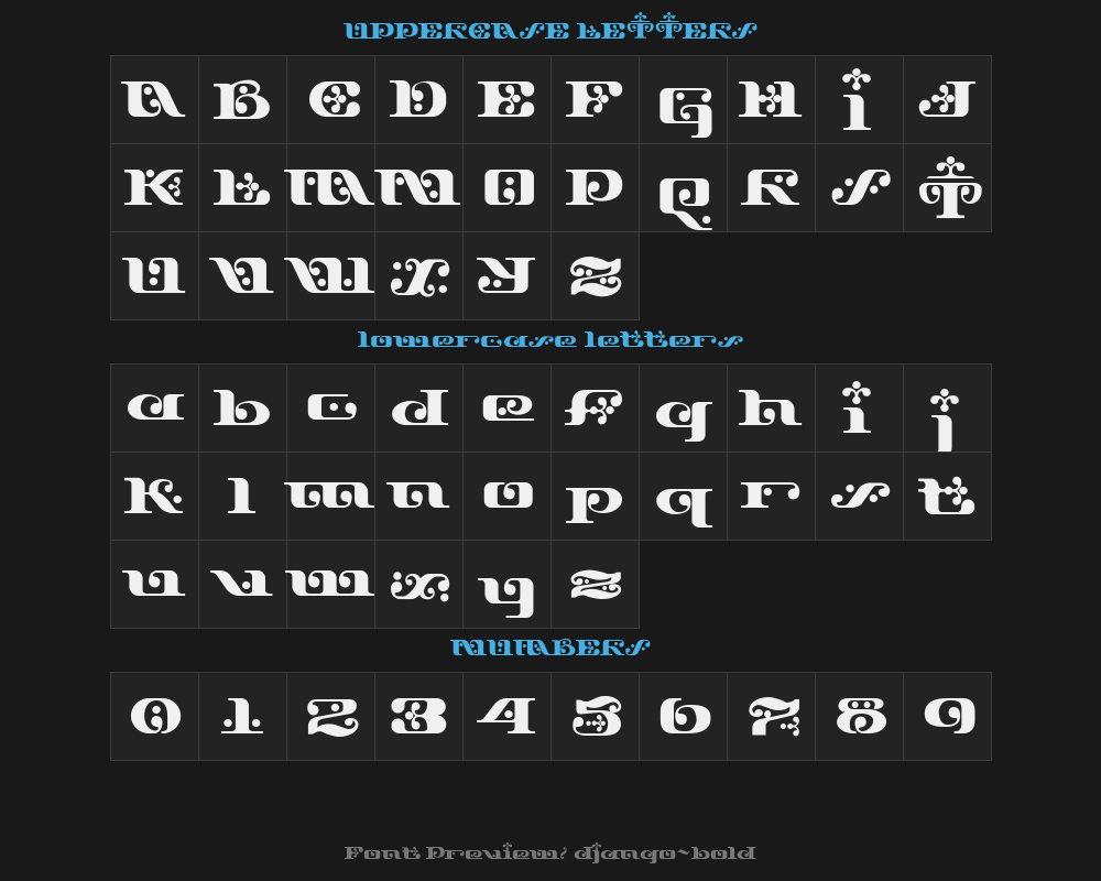 django-bold is a font file with a size of 0.11 MB. The full font name is Django-Bold, Version 001.000 version. It contains 233 characters, supports 8 Chinese characters. The copyright belongs to Django. django-bold font is available for free download, but commercial use requires confirmation on the Django official website whether it's free for commercial use.