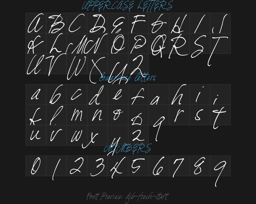 djb-fresh-start is a font file with a size of 0.07 MB. The full font name is DJB Fresh Start, Version 1.00 February 24, 2015, initial release version. It contains 366 characters, supports 8 Chinese characters. The copyright belongs to DJB Fresh Start. djb-fresh-start font is available for free download, but commercial use requires confirmation on the DJB Fresh Start official website whether it's free for commercial use.