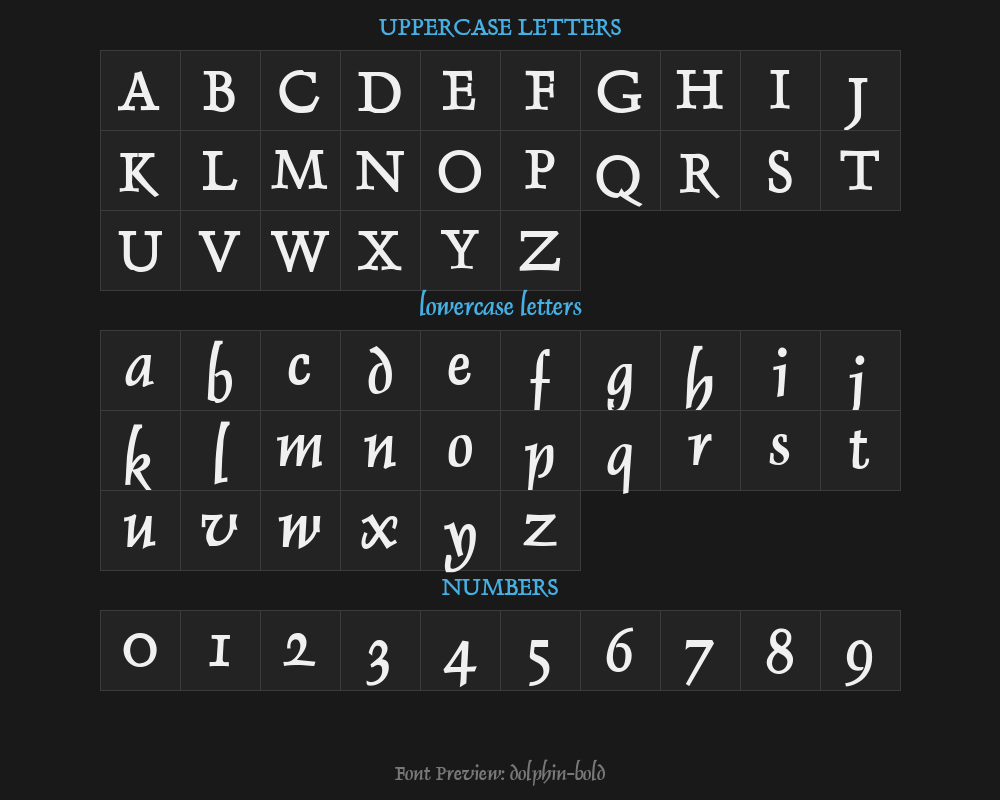 dolphin-bold is a font file with a size of 0.05 MB. The full font name is Dolphin Bold, 1.0 Mon Jul 26 22 28 50 1993 version. It contains 203 characters, supports 8 Chinese characters. The copyright belongs to Dolphin. dolphin-bold font is available for free download, but commercial use requires confirmation on the Dolphin official website whether it's free for commercial use.