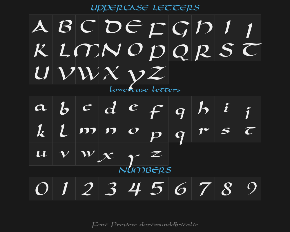 | Unique identifier | Altsys Fontographer 4.0.3 DortmundDB Italic |
