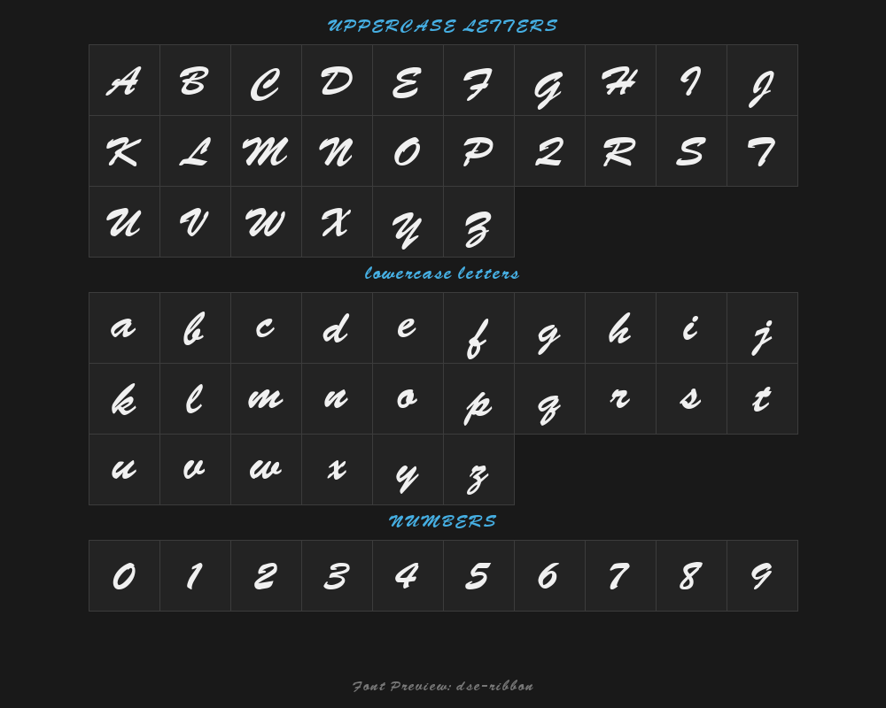 dse-ribbon is a font file with a size of 0.07 MB. The full font name is DSE Ribbon, Version 2.1 - January 1998 version. It contains 337 characters, supports 8 Chinese characters. The copyright belongs to DSE Ribbon. dse-ribbon font is available for free download, but commercial use requires confirmation on the DSE Ribbon official website whether it's free for commercial use.
