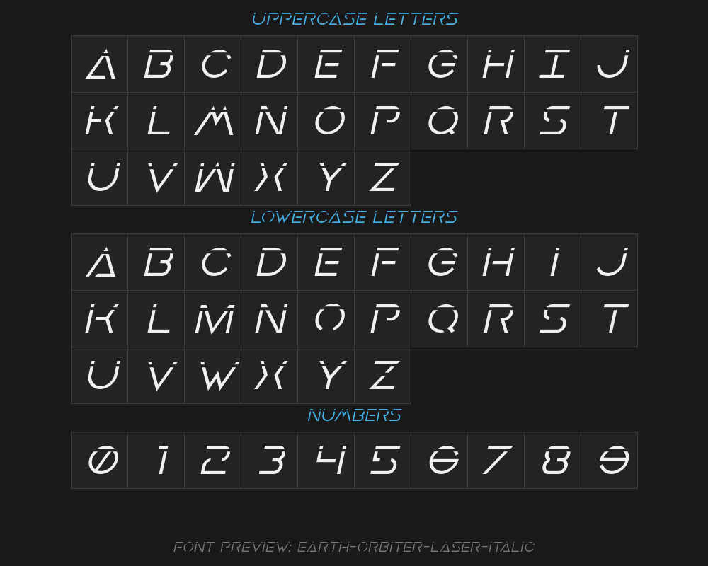 | AboutFont | Earth Orbiter Laser Italic 2016 |