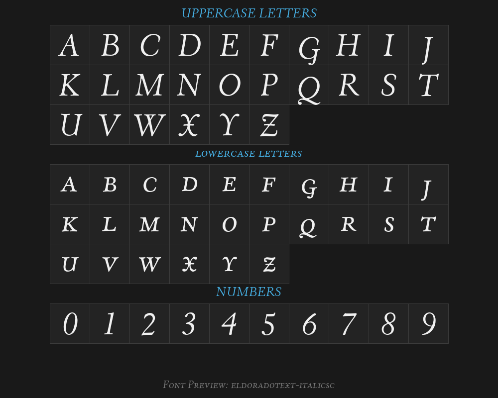 eldoradotext-italicscFont details