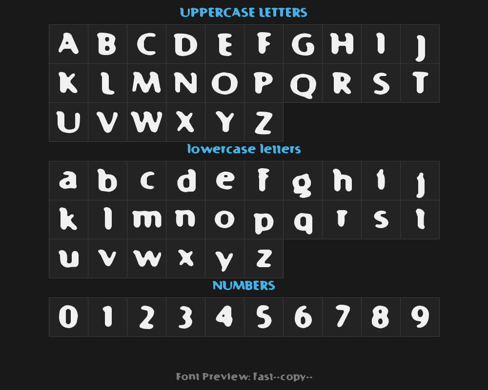 fast-99-copy-1- is a font file with a size of 0.01 MB. The full font name is Fast 99, .ttf version. It contains 81 characters, supports 8 Chinese characters. The copyright belongs to Fast 99. fast-99-copy-1- font is available for free download, but commercial use requires confirmation on the Fast 99 official website whether it's free for commercial use.