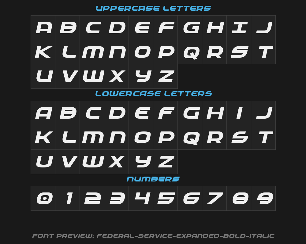 | AboutFont | Federal Service Expanded Bold Italic 2011 |