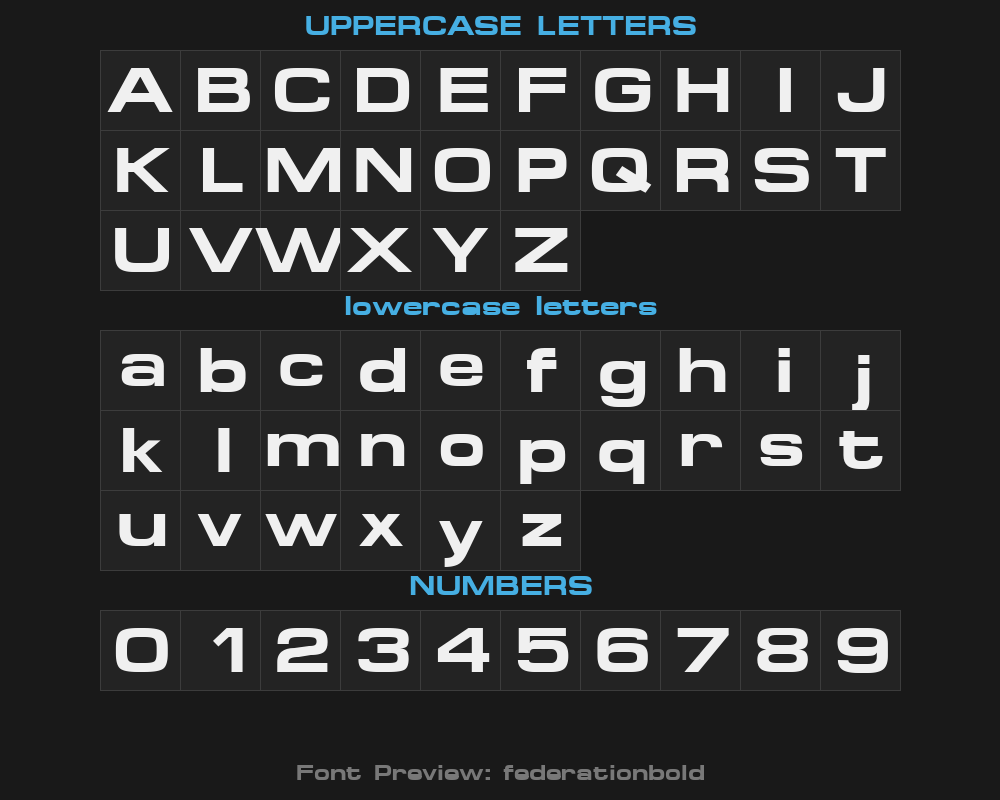federationbold is a font file with a size of 0.03 MB. The full font name is FederationBold, Altsys Metamorphosis 8 22 94 version. It contains 138 characters, supports 8 Chinese characters. The copyright belongs to FederationBold. federationbold font is available for free download, but commercial use requires confirmation on the FederationBold official website whether it's free for commercial use.