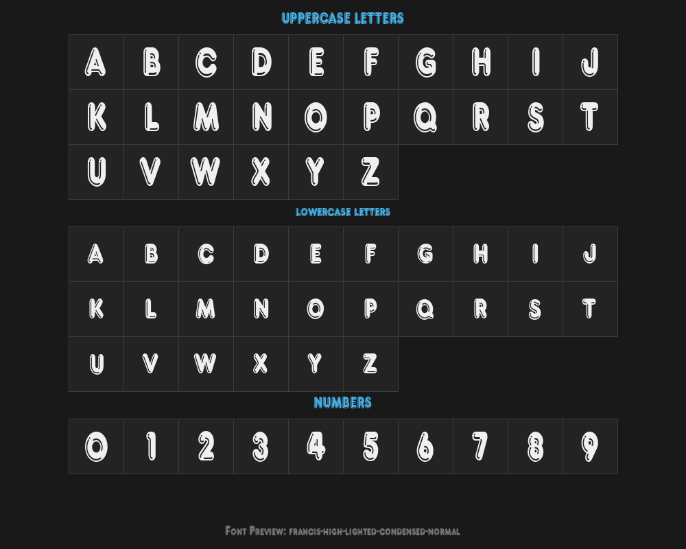 | PostScript name | FrancisHighLightedCondensedNormal |