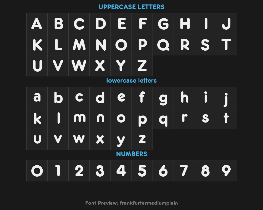 frankfurtermediumplain is a font file with a size of 0.03 MB. The full font name is FrankfurterMediumPlain, 1.0 version. It contains 223 characters, supports 8 Chinese characters. The copyright belongs to Frankfurter Medium Plain. frankfurtermediumplain font is available for free download, but commercial use requires confirmation on the Frankfurter Medium Plain official website whether it's free for commercial use.