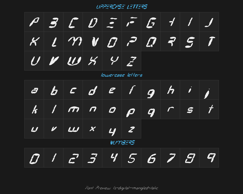 | AboutFont | FZ DIGITAL 7 MANGLED ITALIC |