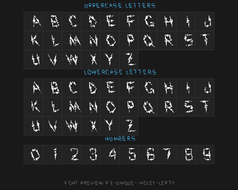| About font family | FZ UNIQUE 19 HOLEY LEFTY |