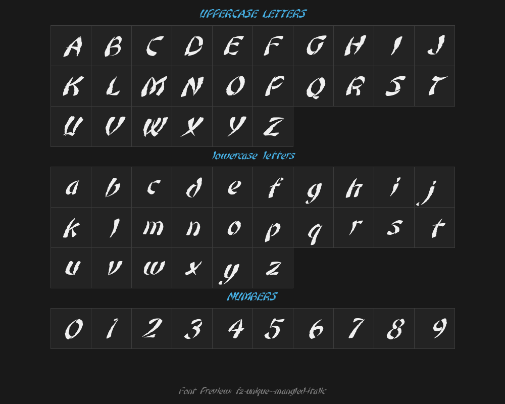 | AboutFont | FZ UNIQUE 22 MANGLED ITALIC |