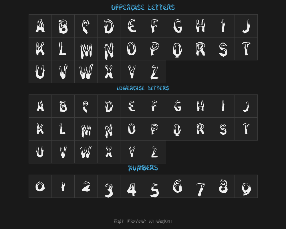 fz-wacky-27 is a font file with a size of 0.08 MB. The full font name is FZ WACKY 27, 1.000 version. It contains 150 characters, supports 8 Chinese characters. The copyright belongs to FZ WACKY 27. fz-wacky-27 font is available for free download, but commercial use requires confirmation on the FZ WACKY 27 official website whether it's free for commercial use.