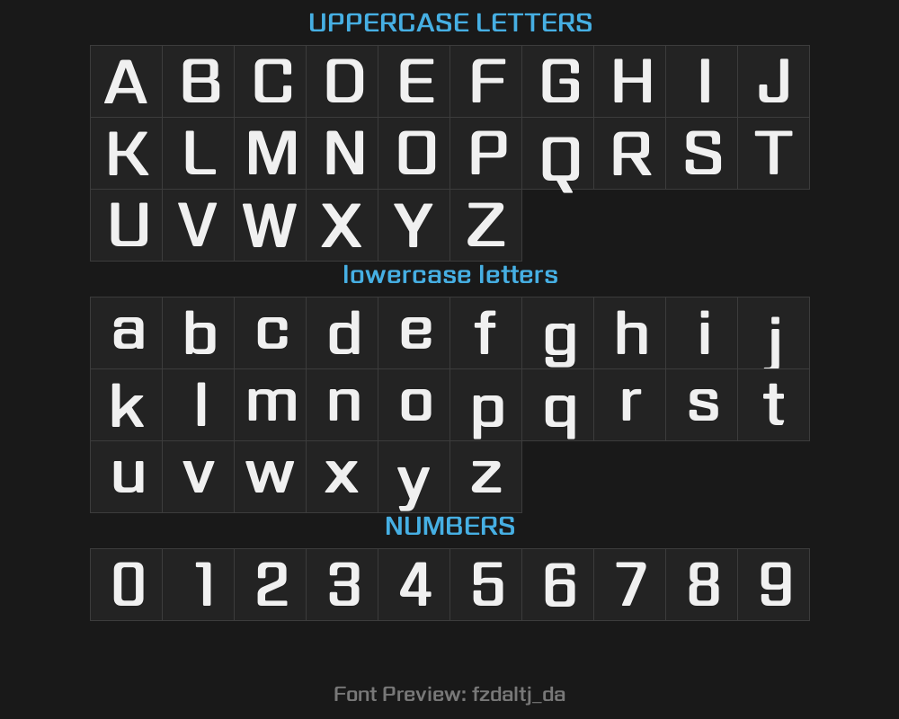 fzdaltj_da is a font file with a size of 2.97 MB. The full font name is FZDaLiTiS ExtraBold, Version 1.01 version. It contains 8105 characters, supports 6763 Chinese characters. The copyright belongs to Fangzheng Dali Simplified Chinese ExtraBold. fzdaltj_da font is available for free download, but commercial use requires confirmation on the Fangzheng Dali Simplified Chinese ExtraBold official website whether it's free for commercial use.