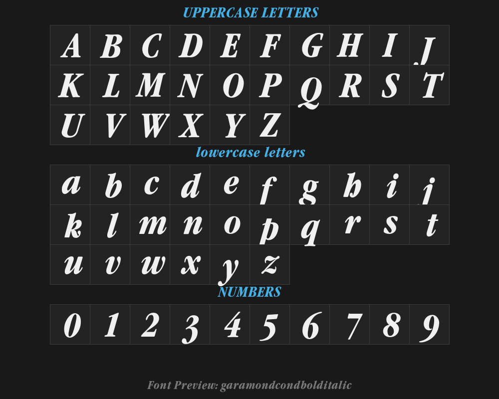 | AboutFont | GaramondCondBoldItalic 1177925169 |