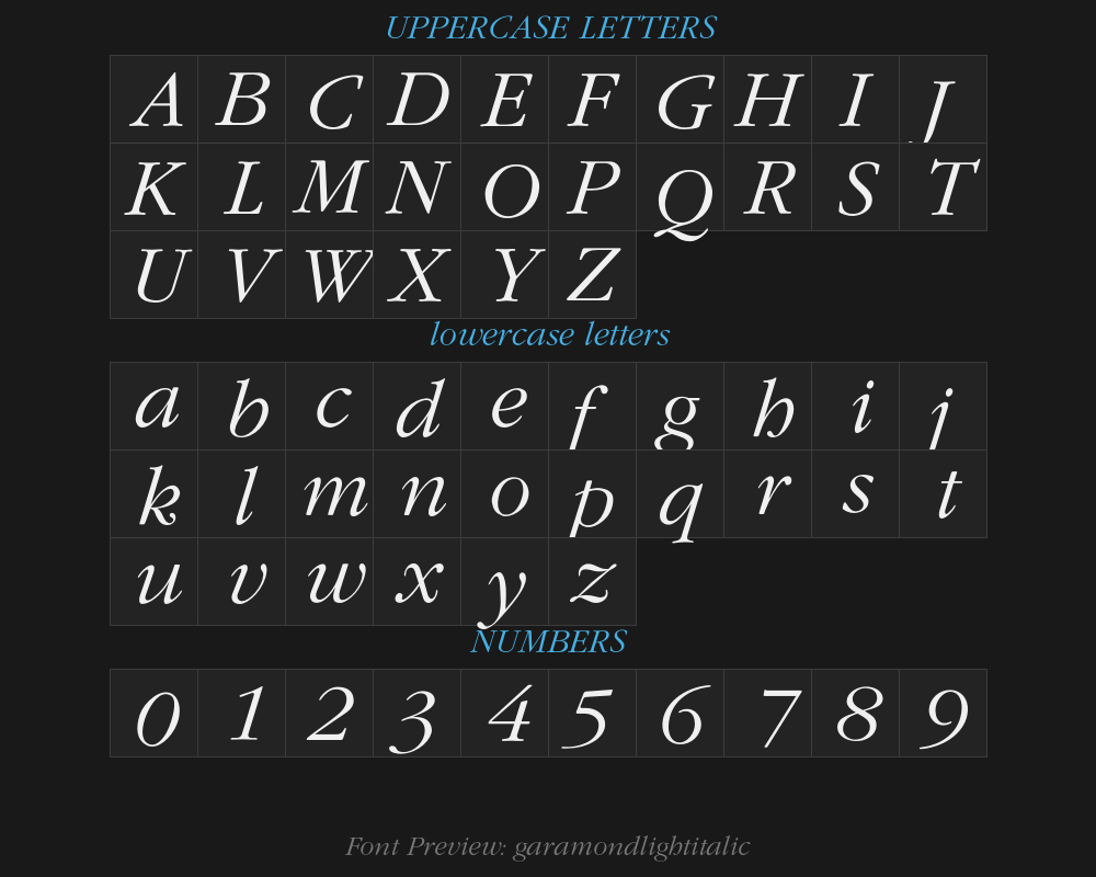 http://enfont.cnxiangyan.cn/font/garamondlightitalicotf.html