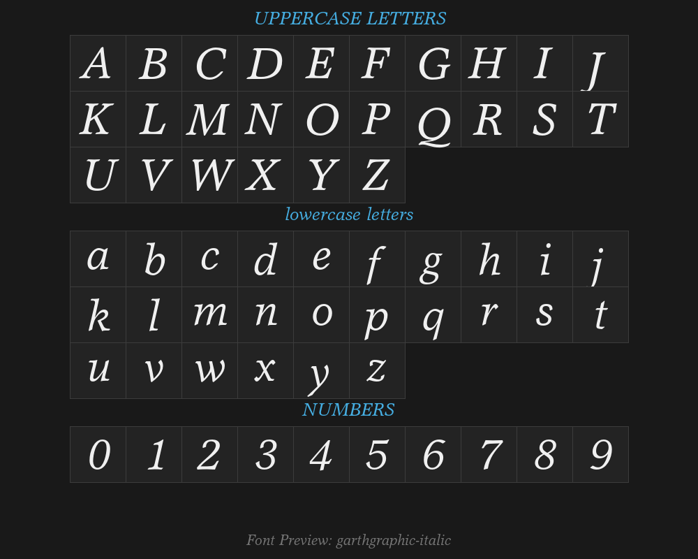 | AboutFont | Garth Graphic Italic 1178633244 |