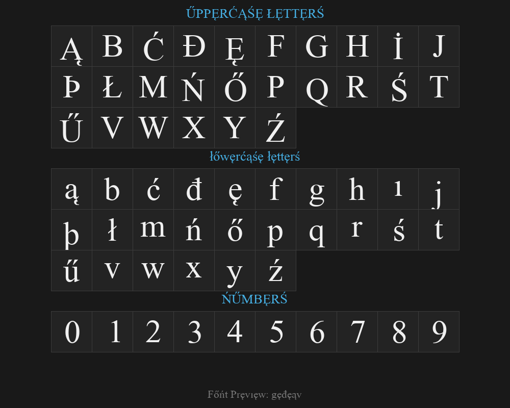 gedeav is a font file with a size of 0.04 MB. The full font name is GedeaV, Altsys Fontographer 3.5 25-02-1995 version. It contains 222 characters, supports 8 Chinese characters. The copyright belongs to GedeaV. gedeav font is available for free download, but commercial use requires confirmation on the GedeaV official website whether it's free for commercial use.