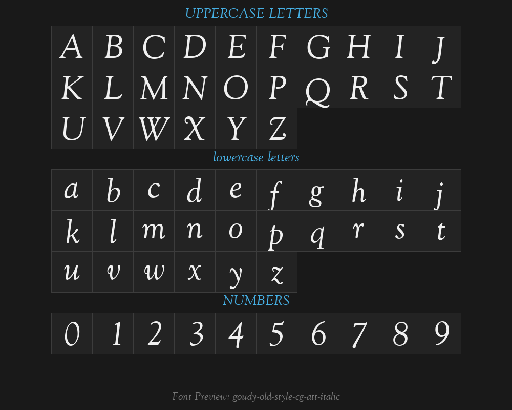 | PostScript name | GoudyOldStyleCgATT-Italic |