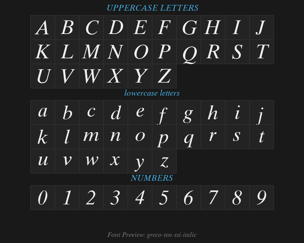 greco-ten-ssi-italicFont details