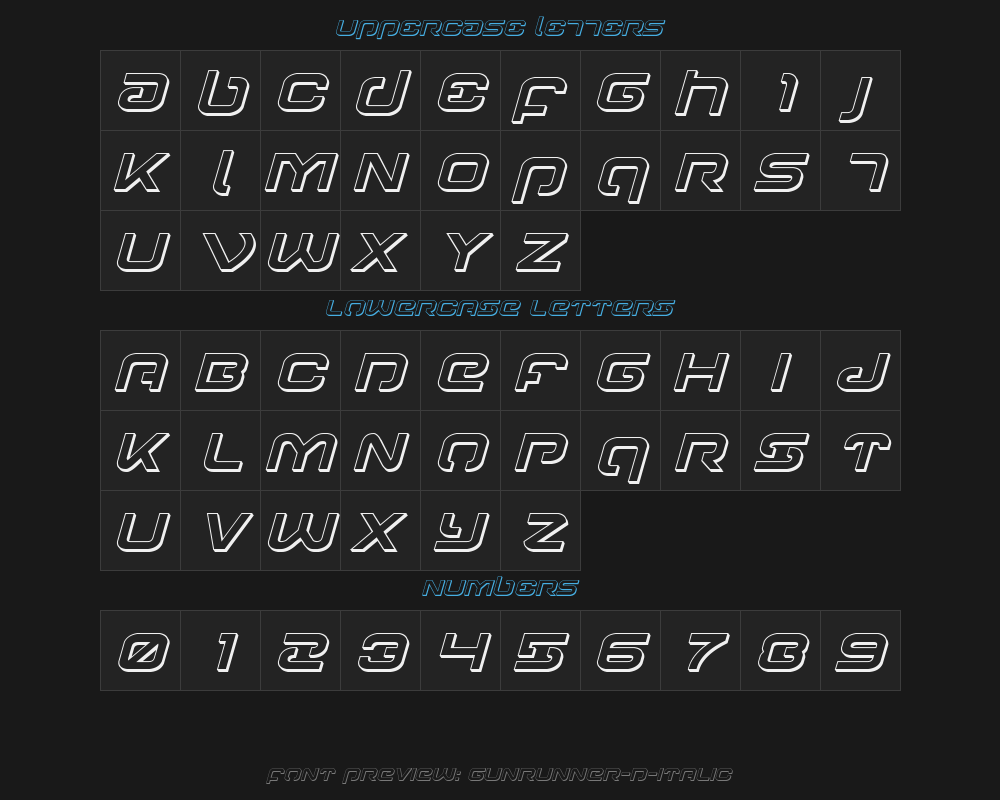 | AboutFont | Gunrunner 3D Italic 2016 |