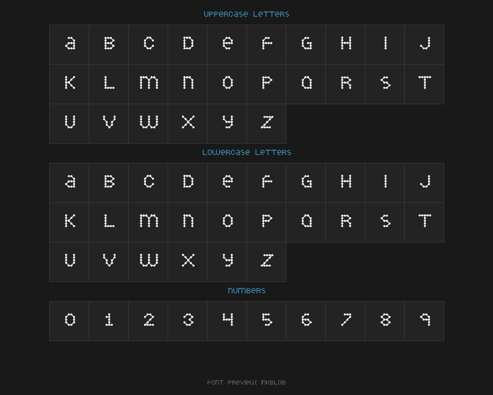 inkblob is a font file with a size of 0.04 MB. The full font name is Inkblob, 001.000 version. It contains 215 characters, supports 8 Chinese characters. The copyright belongs to Inkblob. inkblob font is available for free download, but commercial use requires confirmation on the Inkblob official website whether it's free for commercial use.