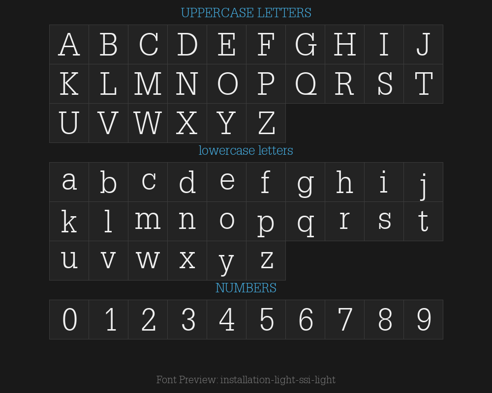 | Font family name | Installation Light SSi |