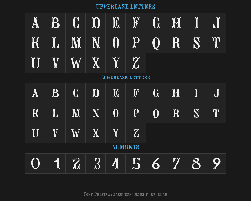 | AboutFont | Weatherly Systems, Inc. JacquesRoughcut Regular |