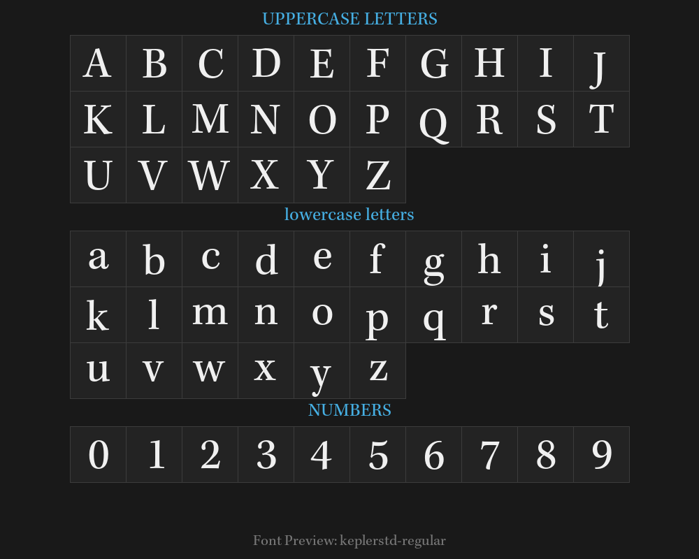 http://enfont.cnxiangyan.cn/font/keplerstd-regularotf.html